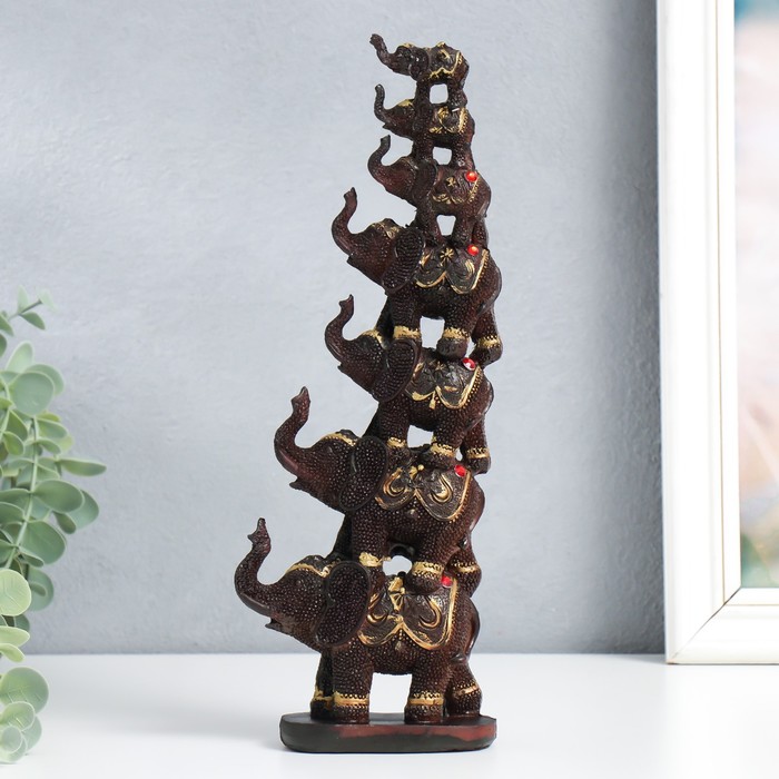 Фигурка полистоун «Семь слонов в пирамиде», коричневый, 5.3×10×29 см
