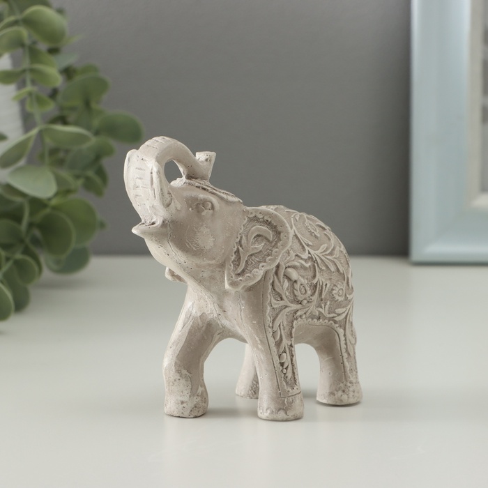 Фигурка гипс «Слон резной», 10×10×5 см, слоновая кость