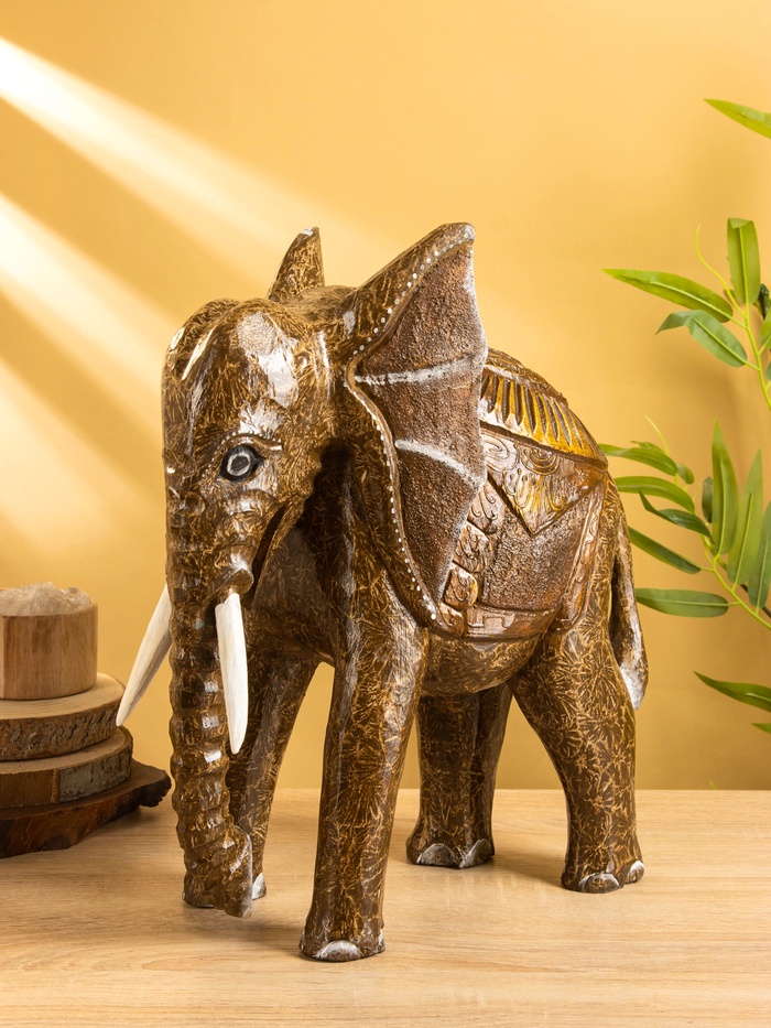 Фигурка полистоун «Слон в попоне с сапфирами», под дерево, 21×18×9 см