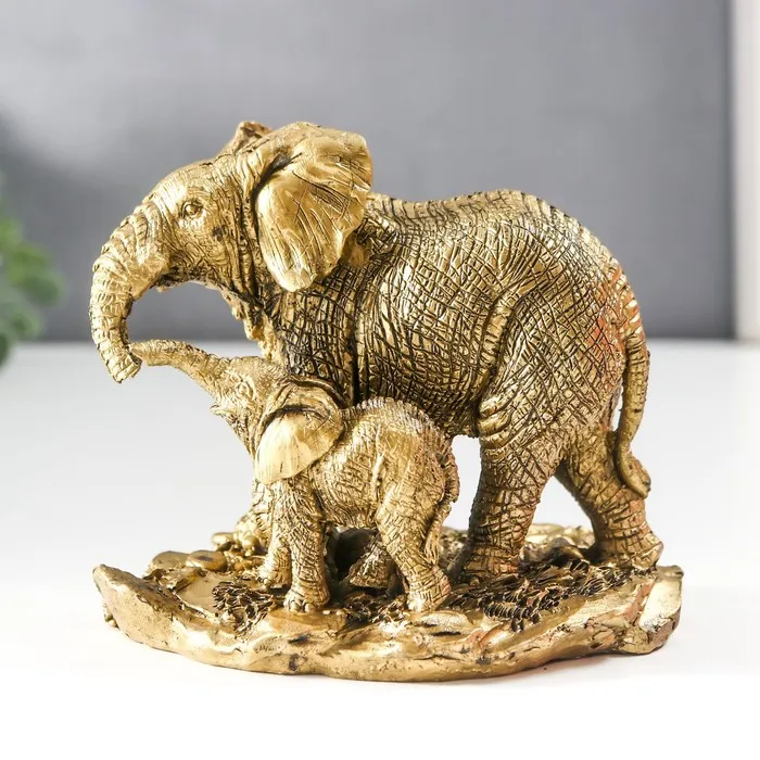Фигурка полистоун «Слон со слонёнком», под золото, 9.5×7.5×11.5 см