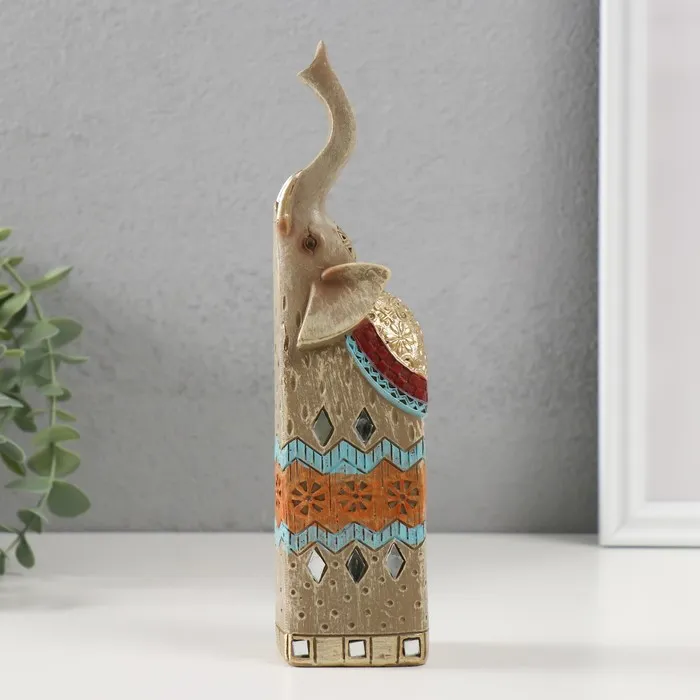 Фигурка-подсвечник полистоун «Слон на пьедестале в попоне с цветами», 15.5×8×7.5 см