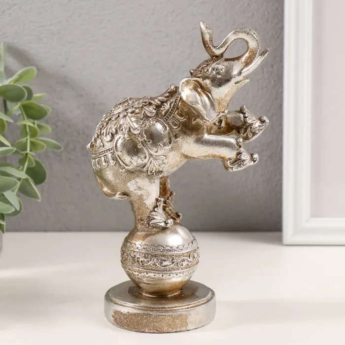 Фигурка полистоун «Слон цирковой на шаре с узорами», серебро, 11.5×7×18.5 см