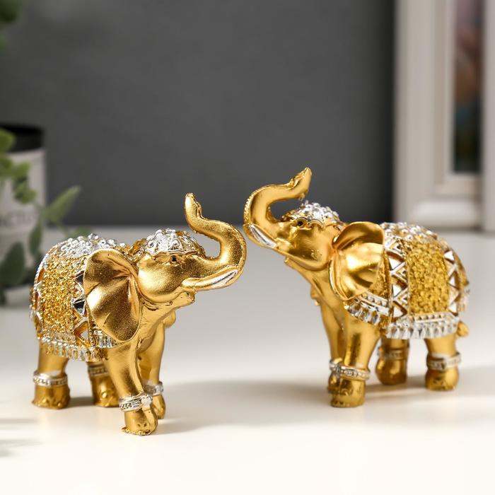 Фигурка полистоун «Африканский слон в золотой, ажурной попоне», 8.5×7×3 см, МИКС