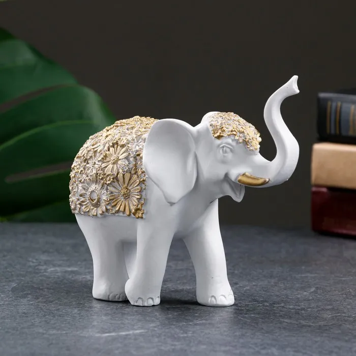 Фигурка полистоун «Слон», белый с золотом