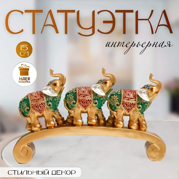 Фигурка полистоун «Три слона на дуге: попона с красно-зелёная», 24×5×15 см