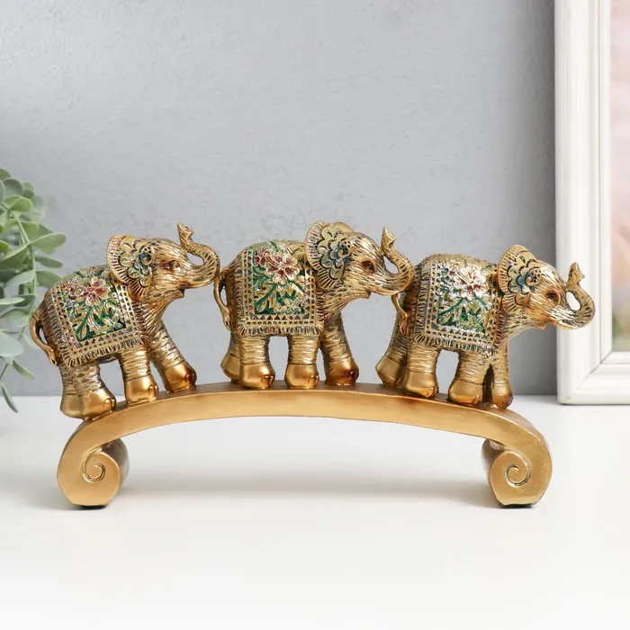 Фигурка полистоун «Три белых слона на дуге, с золотом», 26×5.5×13 см
