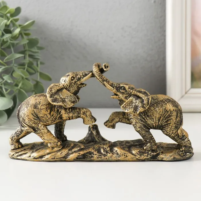 Фигурка полистоун «Игры слонов», под бронзу, 19×5.5×9.5 см