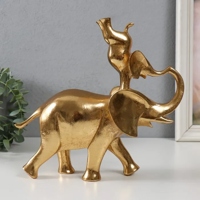 Набор фигурок полистоун «Слониха со слонёнком», золото, 2 шт., 32×6.6×13 см