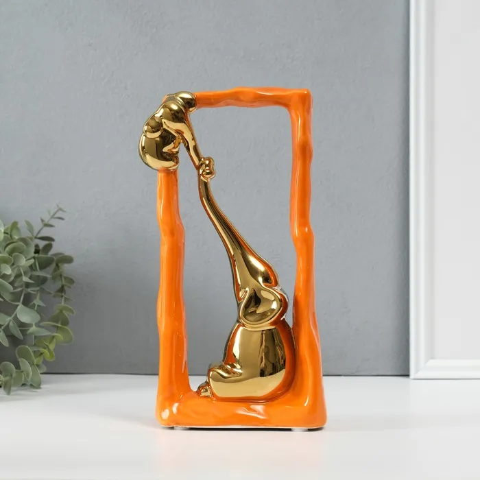 Сувенир керамика "Слон со слонёнком - опора. Прямоугольник" оранж с золотом 5,5х13,5х26 см 1032365