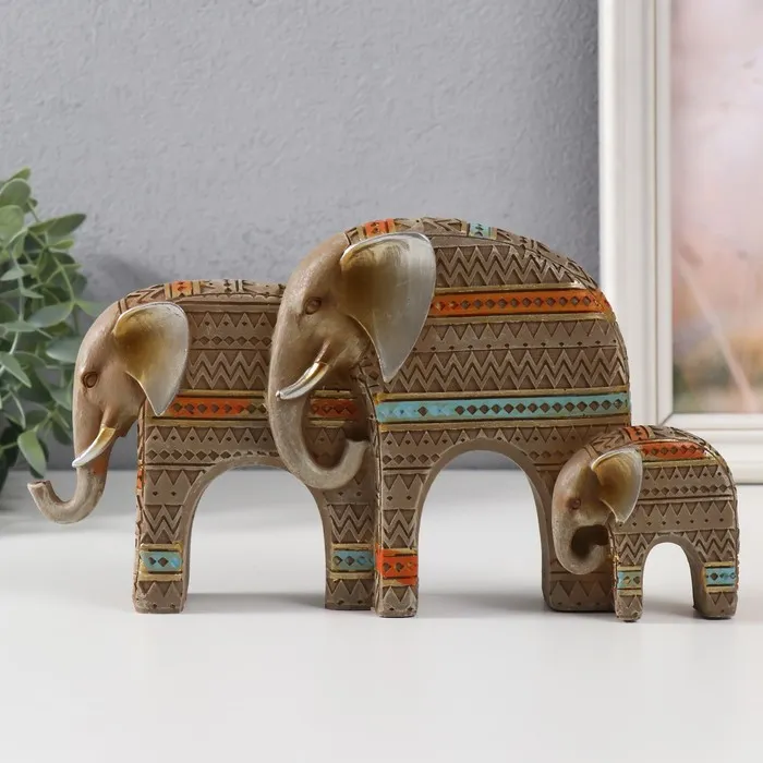 Фигурка полистоун «Семейство слонов. Африканские узоры», мокко, 7×5×15 см