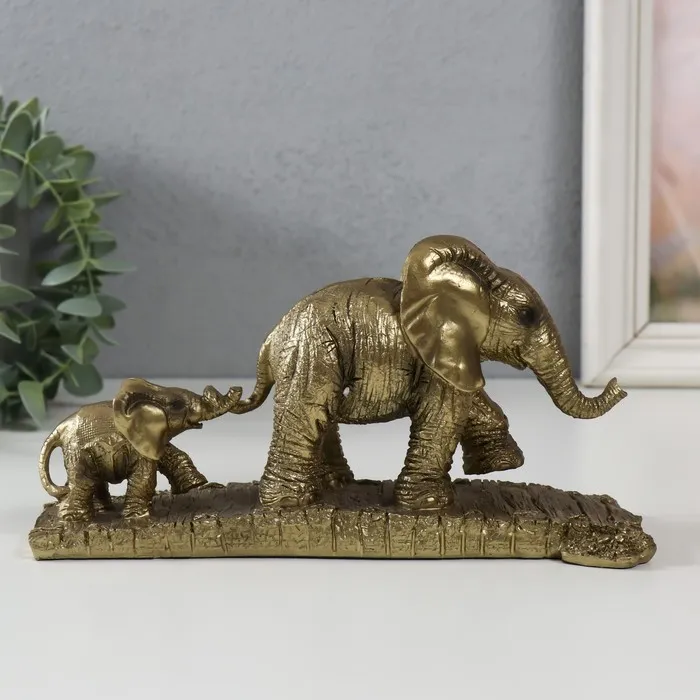 Фигурка полистоун «Слониха со слонёнком: нежность», золото, 21×8×14.5 см
