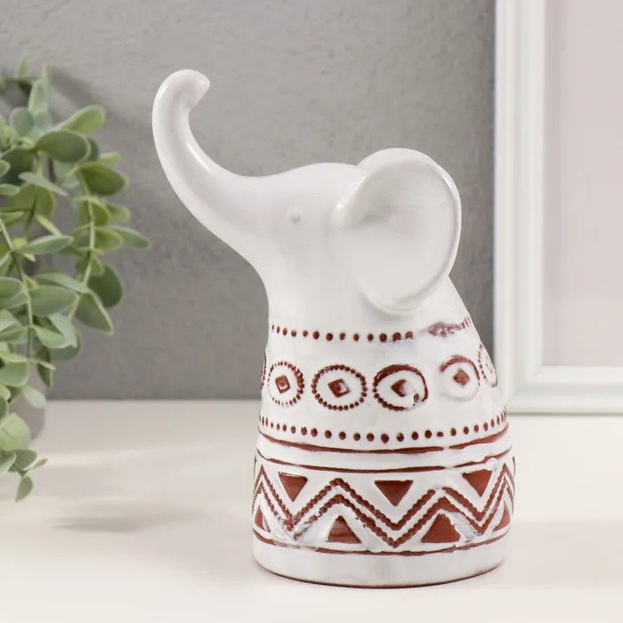Сувенир керамика "Слон. Этнические узоры" белый состаренный 8,5х10,5х17 см