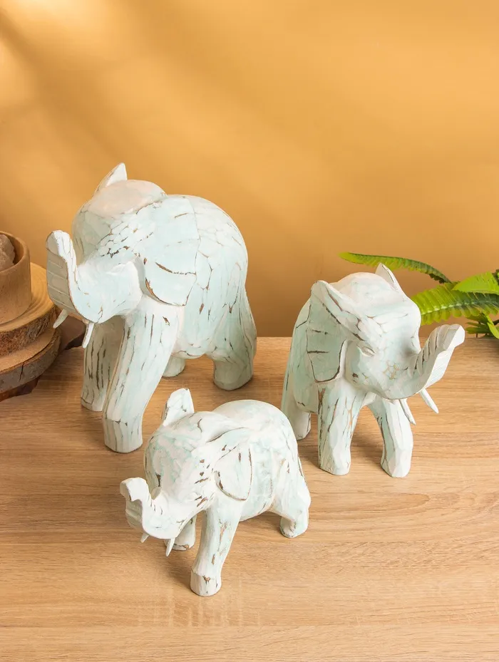Набор сувенирный «Слоники», h=24 см, h=19 см, h=16 см, дерево, голубой