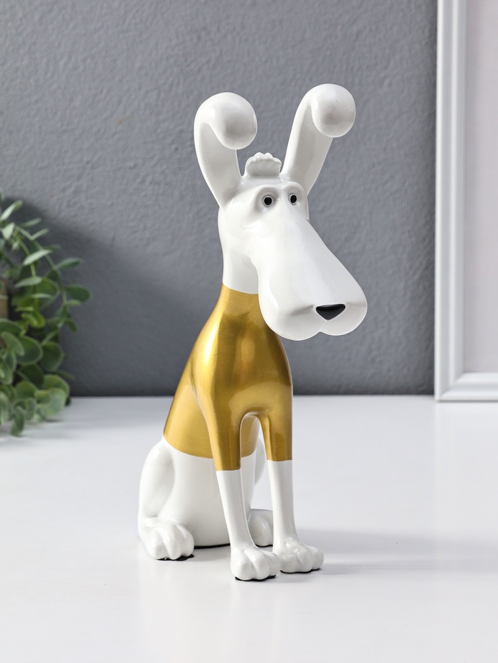 Фигурка полистоун «Борзая», белая с золотым, 25×17 см