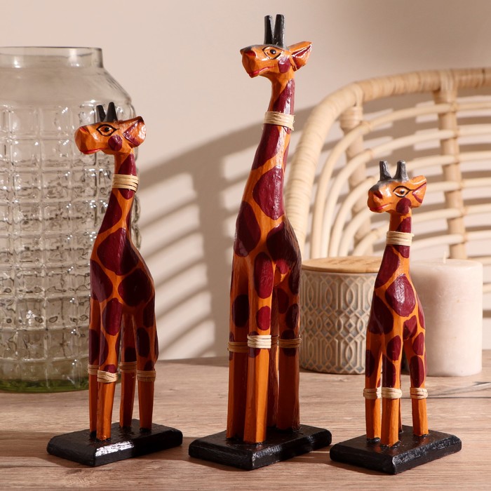 Статуэтки жирафов — отличный способ добавить изысканности и оригинальности вашему интерьеру. Эти грациозные создания, выполненные в виде декоративных фигур, привнесут в ваш дом атмосферу дикой природы и экзотики. Они могут стать как центральным элементом декора, так и изящным дополнением к уже существующему интерьеру.