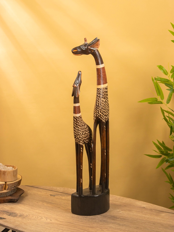 Статуэтки жирафов — отличный способ добавить изысканности и оригинальности вашему интерьеру. Эти грациозные создания, выполненные в виде декоративных фигур, привнесут в ваш дом атмосферу дикой природы и экзотики. Они могут стать как центральным элементом декора, так и изящным дополнением к уже существующему интерьеру.
