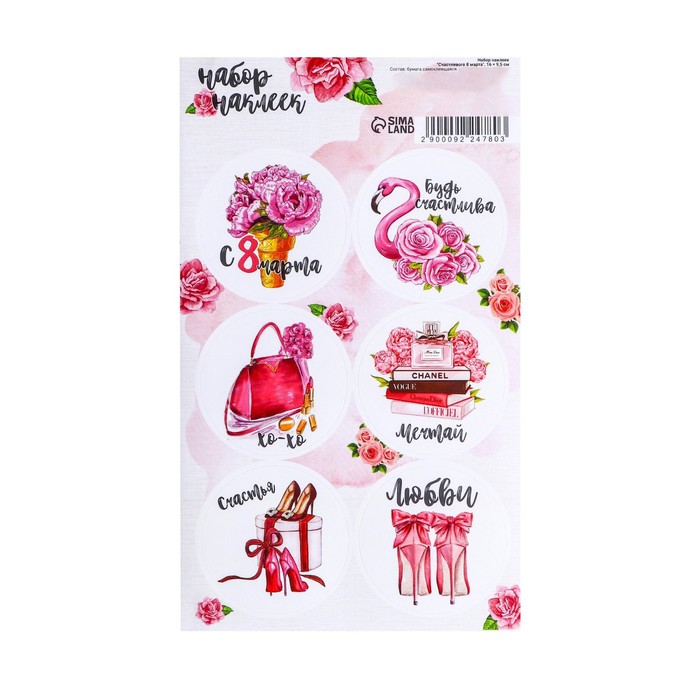 Наклейки для цветов и подарков «Счастливого 8 марта», 16×9.5 см