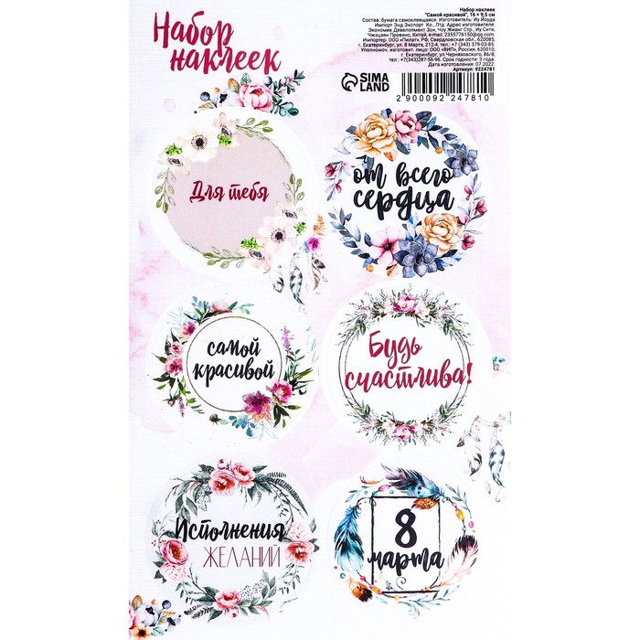 Наклейки для цветов и подарков «Самой красивой», 16×9.5 см
