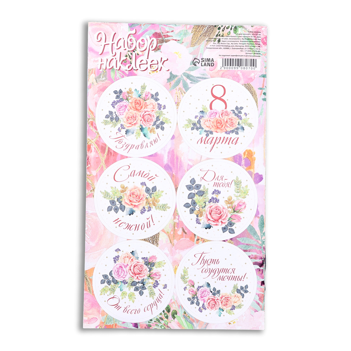 Наклейка для цветов и подарков «8 Марта» 16×9.5 см