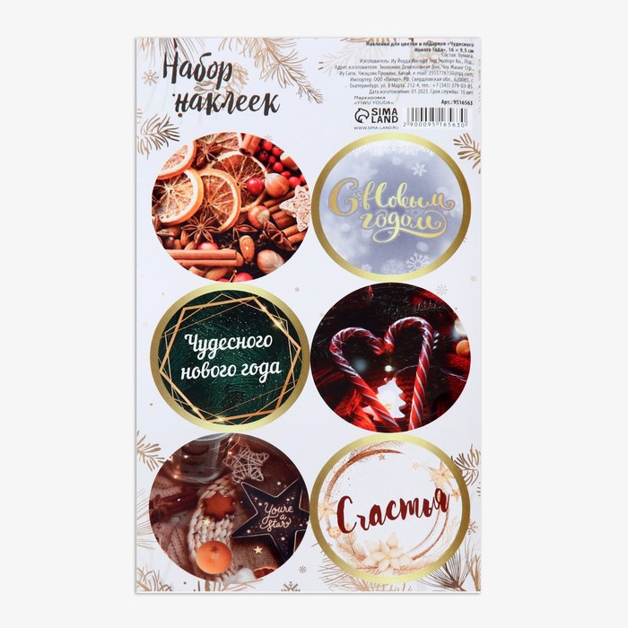 Наклейки для цветов и подарков «Чудесного Нового Года», 16×9.5 см