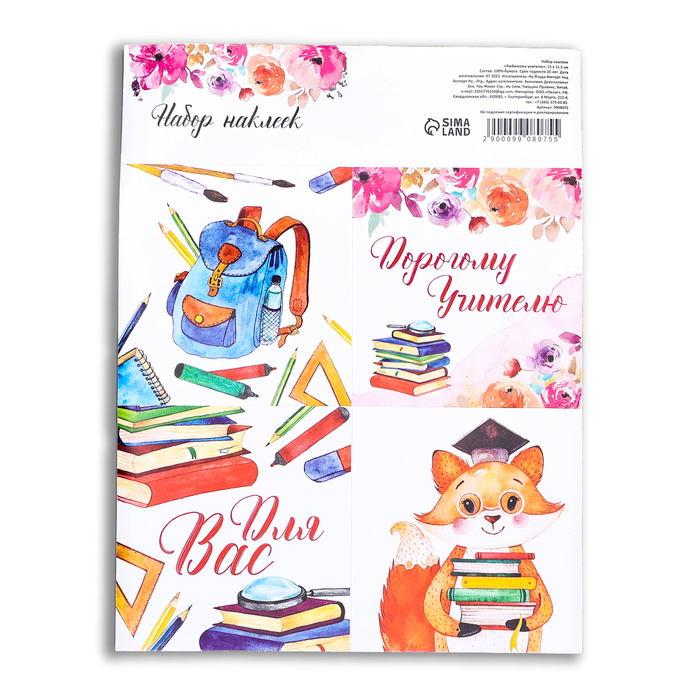 Наклейки для цветов и подарков «Любимому учителю», 15×11.5 см