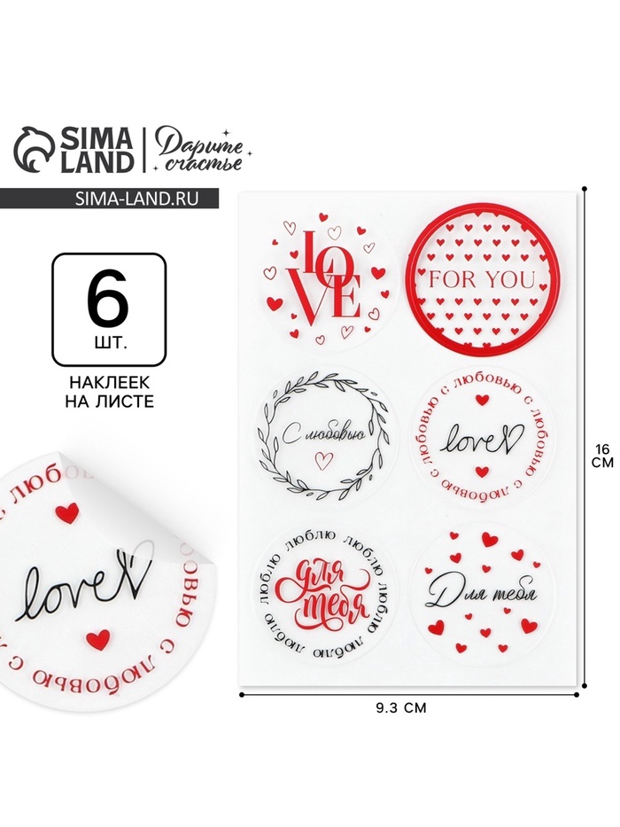 Наклейки для подарков и цветов «С любовью», винил, 9.3 х 16 см