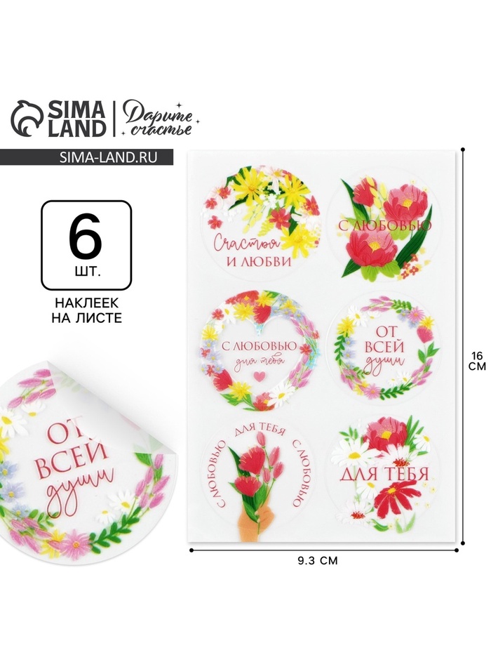 Наклейки для подарков и цветов «От всей души», цветы, винил, 9.3 х 16 см