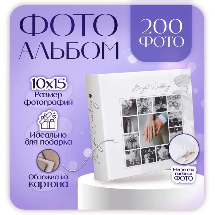 Фотоальбом на 200 фото 10х15 см, бум. листы , книж. переплет "bright wedding" Сентябрь