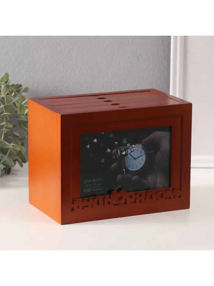 Фотоархив на 96 фото 10х15 см + рамка 10х15 см "Будь рядом" красное дерево 20х15х12 см