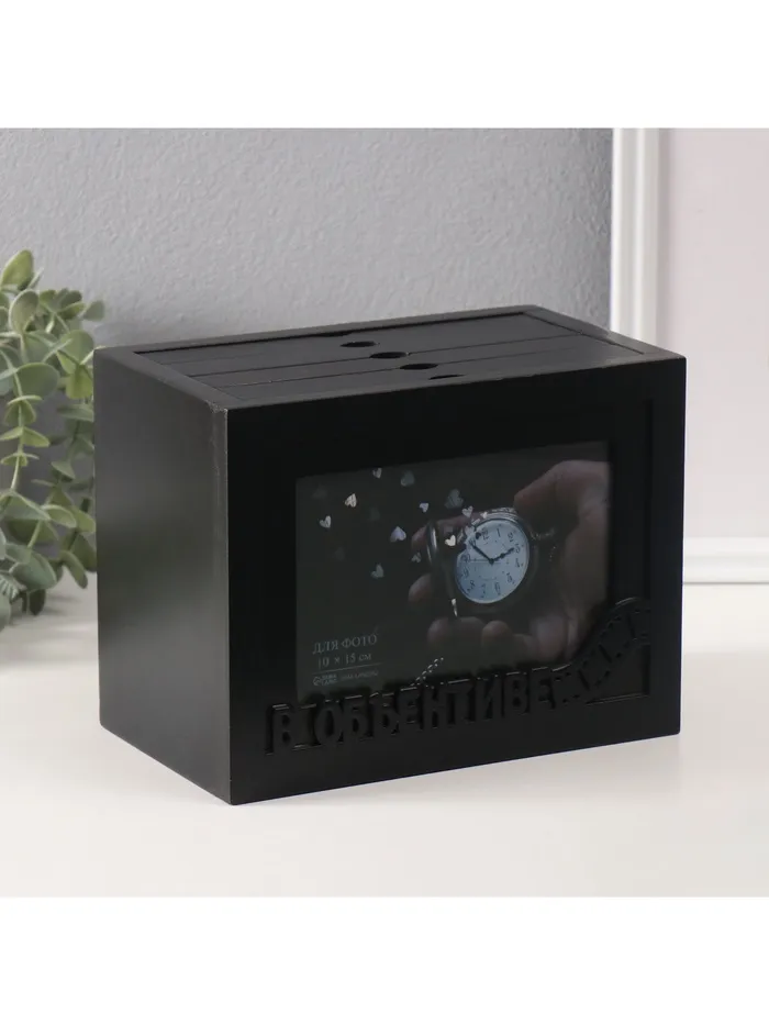 Фотоархив на 96 фото 10х15 см + рамка 10х15 см "В объективе" черный 20х15х12 см