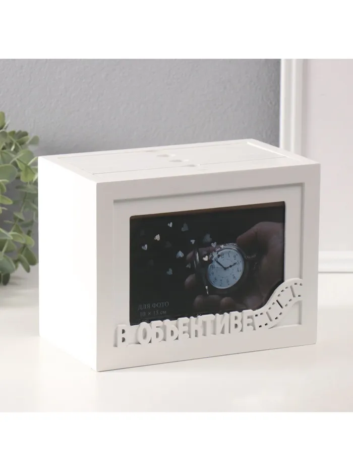 Фотоархив на 96 фото 10х15 см + рамка 10х15 см "В объективе" белый 20х15х12 см