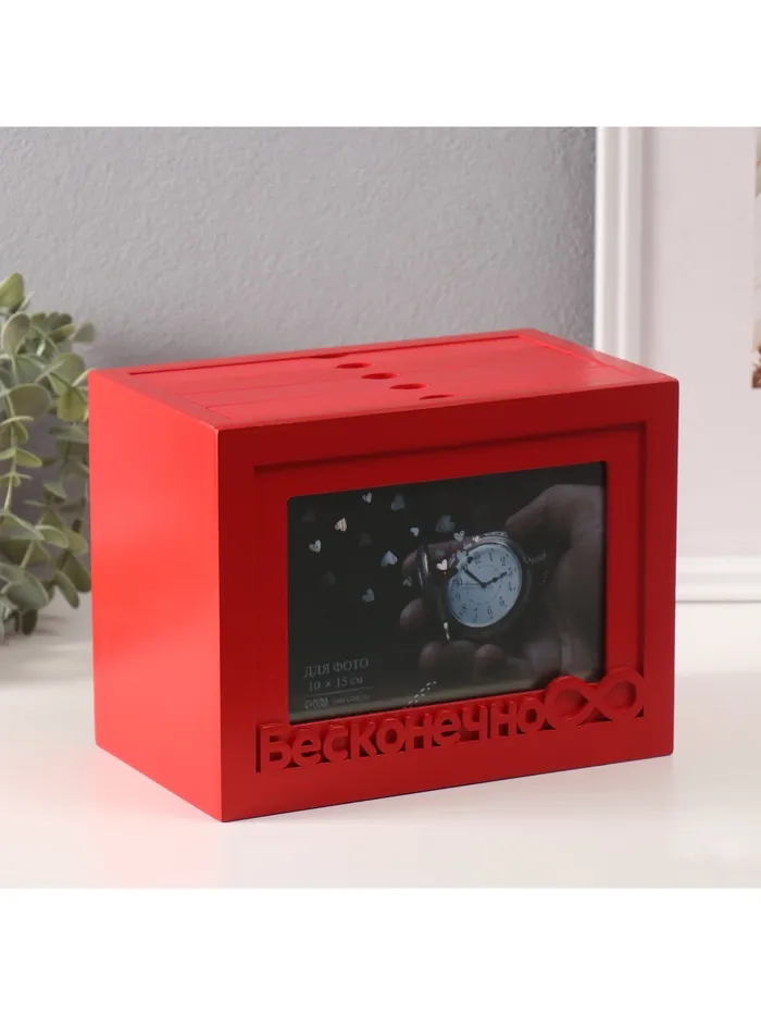 Фотоархив на 96 фото 10х15 см + рамка 10х15 см "Бесконечно" красный 20х15х12 см