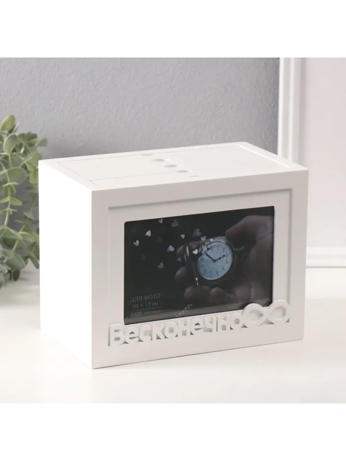Фотоархив на 96 фото 10х15 см + рамка 10х15 см "Бесконечно" белый 20х15х12 см