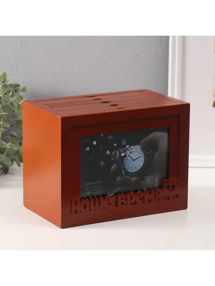 Фотоархив на 96 фото 10х15 см + рамка 10х15 см "Наше время" красное дерево 20х15х12 см