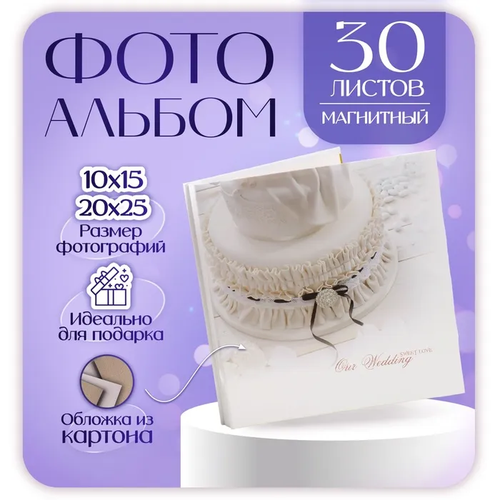 Фотоальбом магнитный на 30 листов «Свадебный», 23×28 см