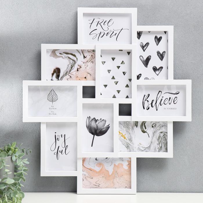 Фоторамка пластик на 10 фото 10х15 см "Пассаж" белая 55х48,5 см