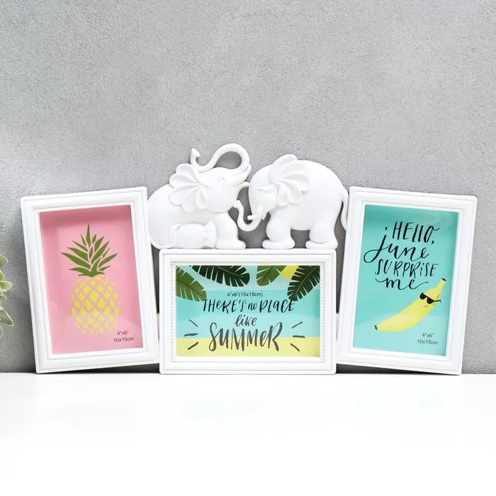 Фоторамка пластик на 3 фото 10х15 см "Два слона" белая 22х43х2 см