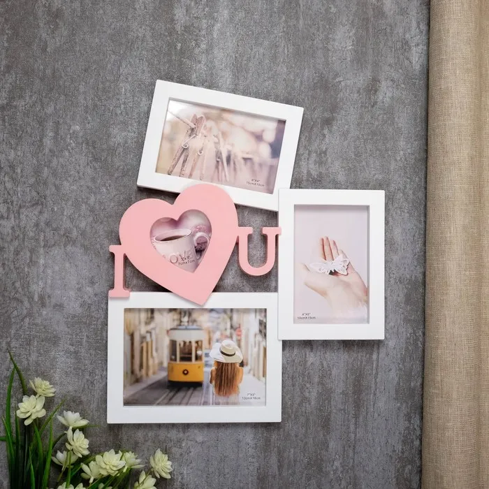 Фоторамка-коллаж на 4 фото 9×9, 10×15, 13×18 см «Я люблю тебя», пластик, мультирамка, белая с розовым, 39.5×32 см