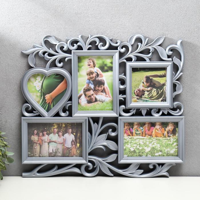 Фоторамка-коллаж "С сердцем" на 5 фото, серебро ( пластиковый экран)