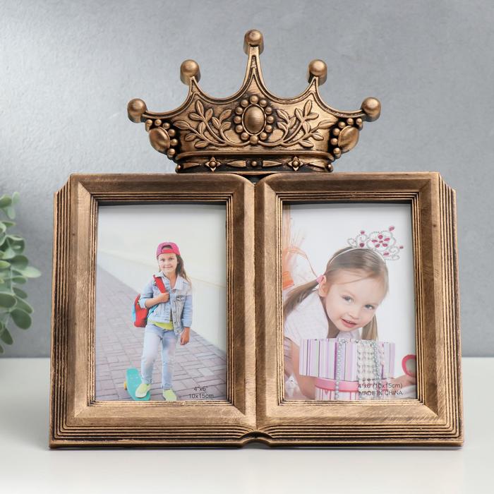 Фоторамка-коллаж на 2 фото 10×15 см «Корона», пластик, т. золото, 30×28 см