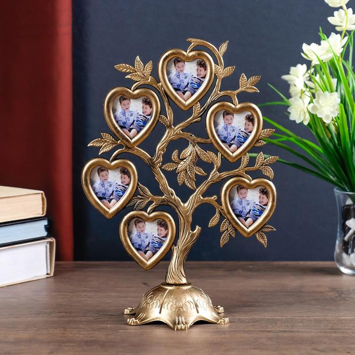 Фоторамка-коллаж на 6 фото 4.5×3 см «Дерево с сердцами», пластик, мультирамка, т. золото, 26.5×19.5×11 см