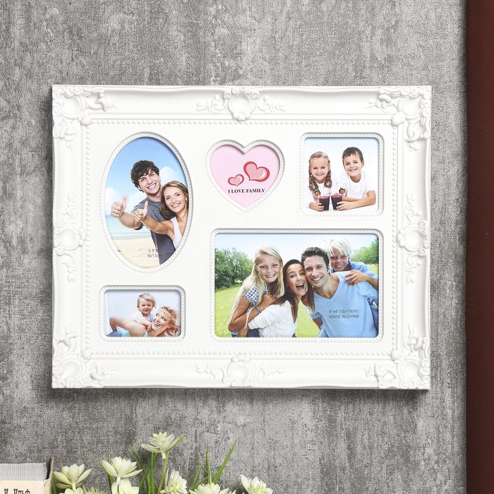 Фоторамка пластик на 5 фото 6х6, 4х7, 9х13. 10х15 см "Империя" белая 26х33х2,5 см