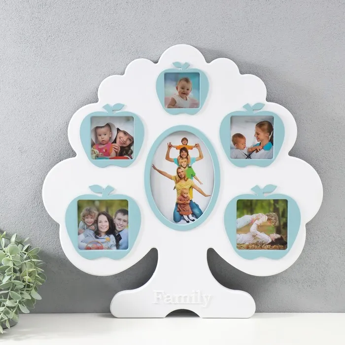 Мультирамка "Яблоня" на 6 фото (13х18, 6х6/1 шт, 10х10, 8х8/2 шт) пластик, цв. бело-голубой