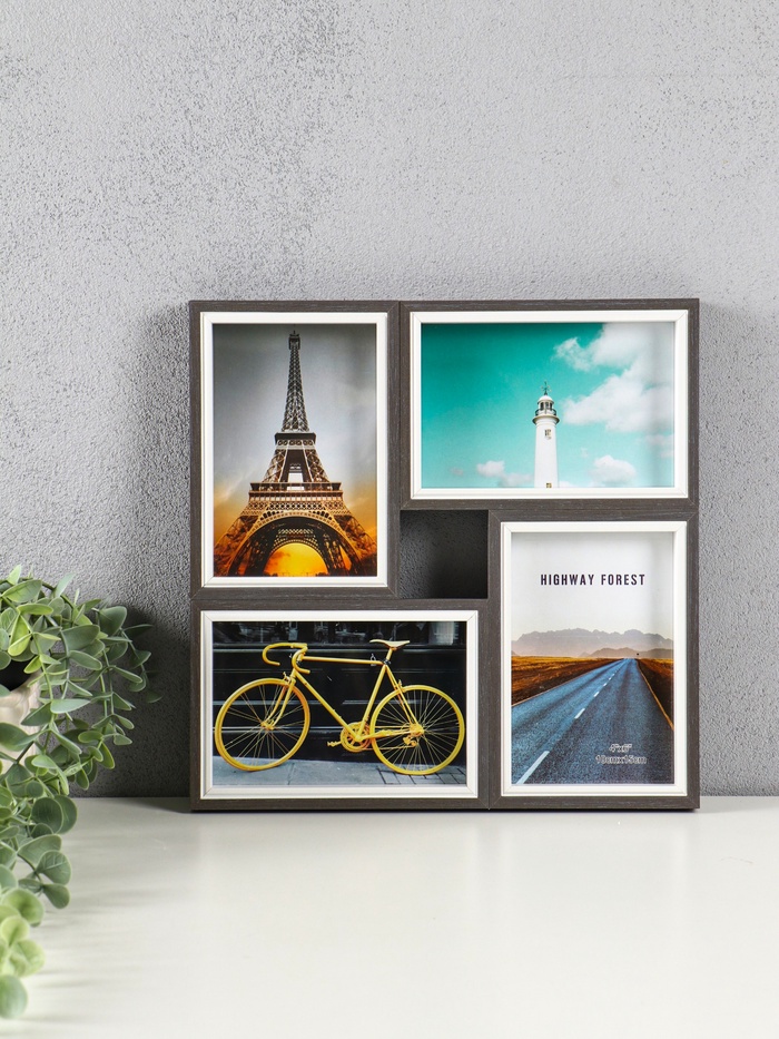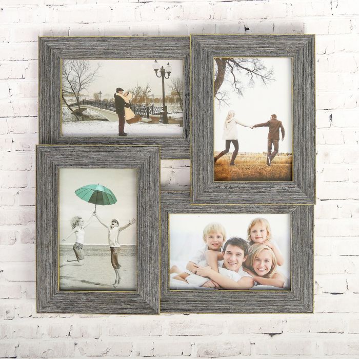 Фоторамка - коллаж на 4 фото 10×15 см «Серый грифель», пластик, 32×31.8 см