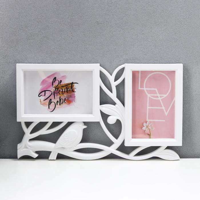Фоторамка - коллаж на 2 фото 10×15 см «Птица счастья», пластик, белая, 21×35 см