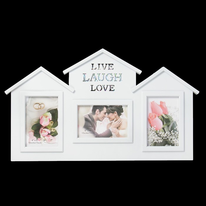 Фоторамка - коллаж на 3 фото 10×15 см «Дом - жизнь. смех, любовь», пластик, белая, 33×54.5 см