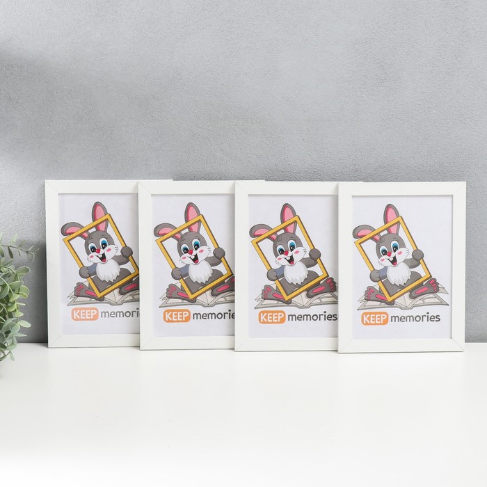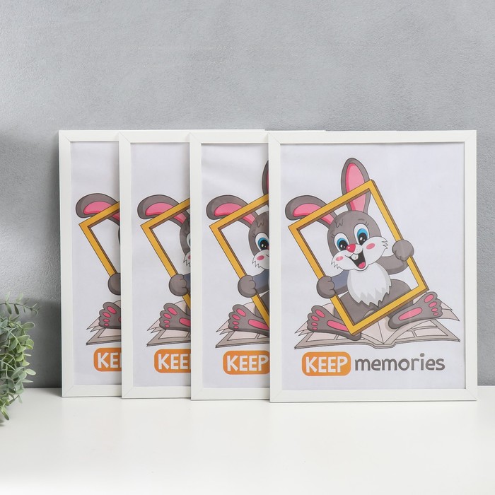 Набор фоторамок для фото 15×21 см OfficeSpace, МДФ, 4 шт., белый, (пластиковый экран)
