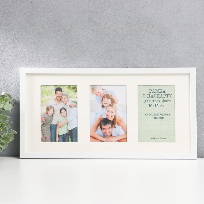 Фоторамка - коллаж на 3 фото 10×15 см, белый, с паспарту
