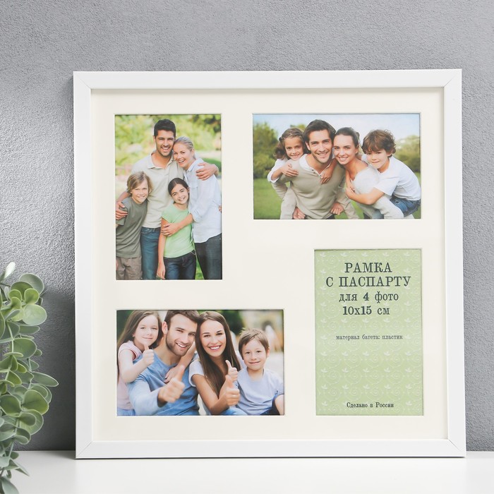 Фоторамка - коллаж на 4 фото 10×15 см «Семья», белый