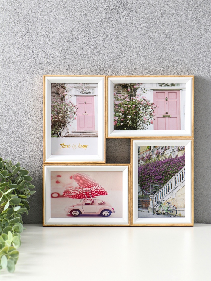 Фоторамка - коллаж на 4 фото 10×15 см «Двухцветная», пластик, под бук и белый, 30×30×2 см